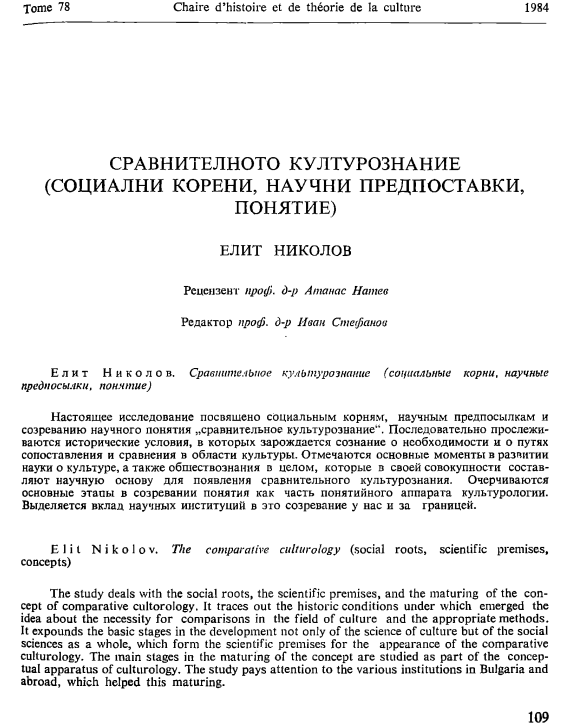 God. SU. Istoricheski f-t .t. 78. Katedra po istoria i teoria na kulturata