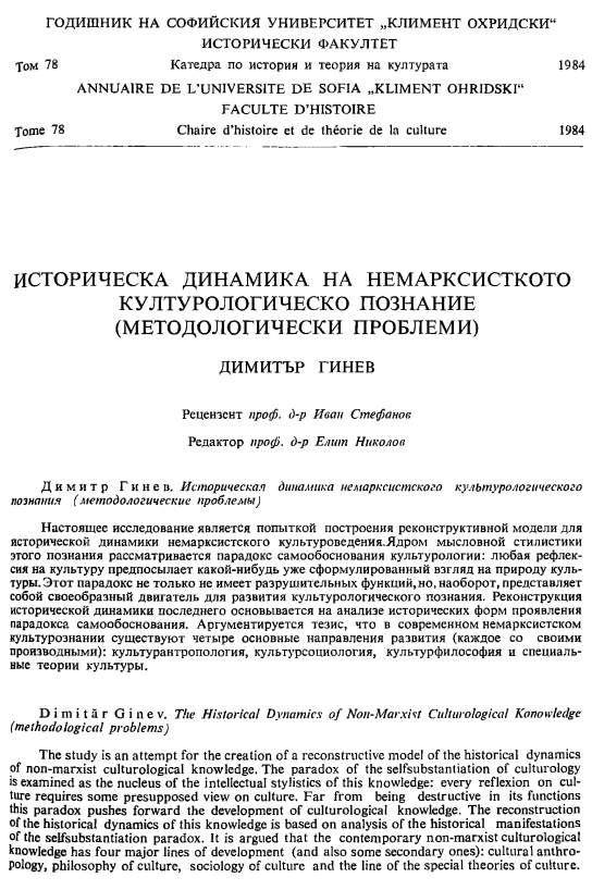 Shvemer O. Ponyatieto kultura. - Informatsionen byuletin na druzhestvoto na estetitsite, izkustvovedite i literaturovedite v Bulgaria, 1984, No Z