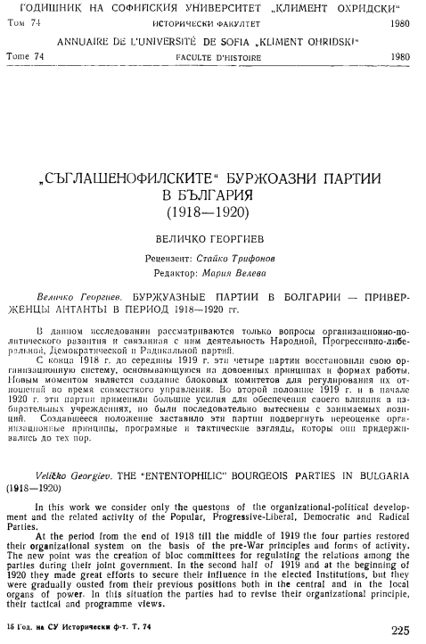 Хр. Стефанов. Бълrарската Радикалдемократическа партия в периода на следвоенната революционна криза (1919-1923). - Год. Соф. унив., Ист. фак., Т. 69, 1980, с. 255-275.