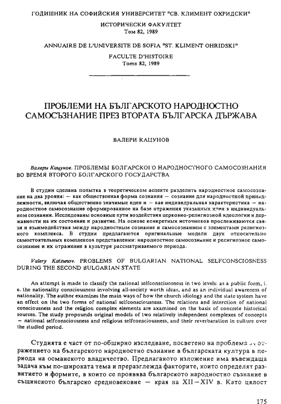 Problems of Bulgarian National Selfconsciosness During the Second Bulgarian State