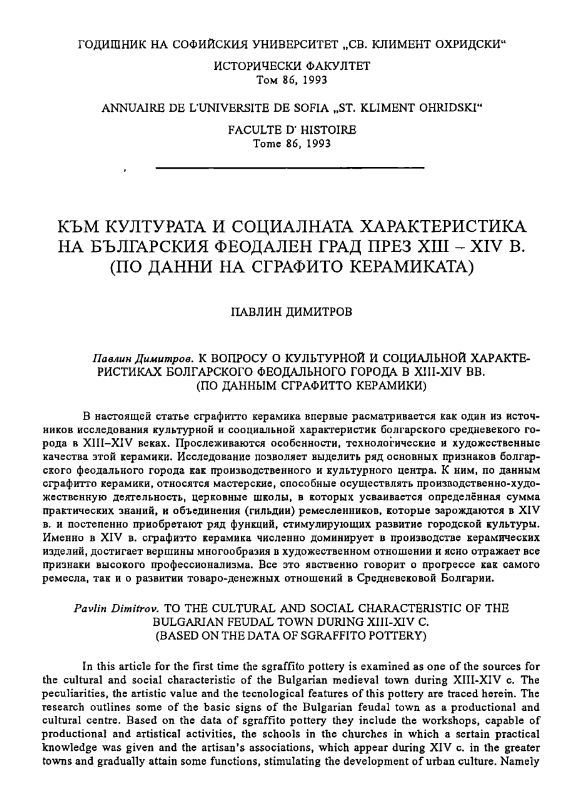Към културата и социалната характеристика на българския феодален град през XIII - XIV в. (по данни на сграфито керамиката)