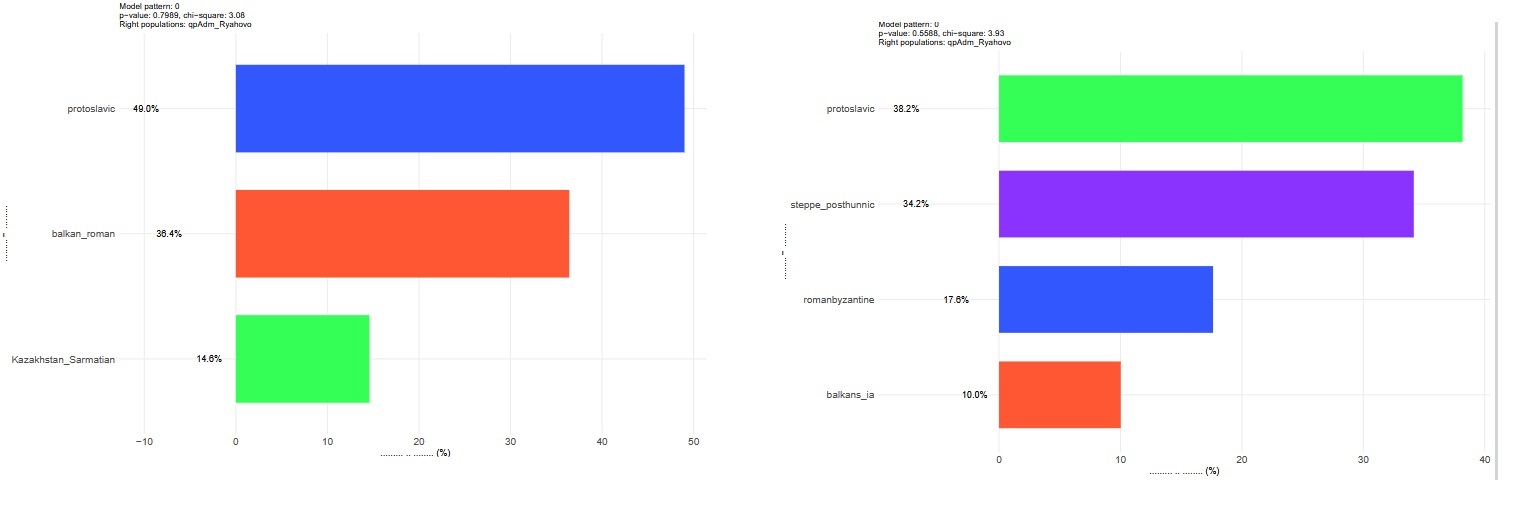 Резултатите от от анализа на древна ДНК демонстрират, че трансформацията на балканските популации през Ранното средновековие представлява процес на постепенна интеграция и преобразуване, а не внезапна, еднократна подмяна на популациите. До аналогични заключения е достигнала преди шестдесет години В. Тъпкова-Заимова, като е формулирала хипотезата си след анализ на данни от средновековните писмени източници. Изледването ни демонстрира популационна идентичност между образците от Ряхово и образците от Битоля (IX – X в.), които показват близост при моделиране и са резултат от смесване на централноевропейски, възможно протославянски компонент (47 – 49%) с балкано-римски компонент (36 – 42%) и степен, възможно сарматски компонент (11 – 14,6%). Тази популационна близост между индивидите от два географски отдалечени некропола от централните части на Първото българско царство предполага наличието на относително хомогенна популация в рамките на държавата още в началото на X в., откогато датират образците. Степента на смесване варира от регион до регион, с градиент на леко намаляване на степния компонент от север на юг и от изток на запад, но процесът води до формирането на нова, стабилна популационна структура, универсално представена в некрополите на Централните и Източните Балкани. Тази структура, след етап на постепенно формиране през Ранното средновековие, се отличава със забележителна устойчивост в продължение на следващите 1000 години и е останала непроменена до днес. Процесът на популационна трансформация, който е довел до съществуването на съвременната българска популация, има дълбоки корени в римската епоха и е продължил през целия период на Великото преселение на народите, създавайки генетична основа, чиито характеристики се срещат, освен в съвременната българска популация, и в съседните на България съвременни балкански популации, като популацията на Северна Македония.
