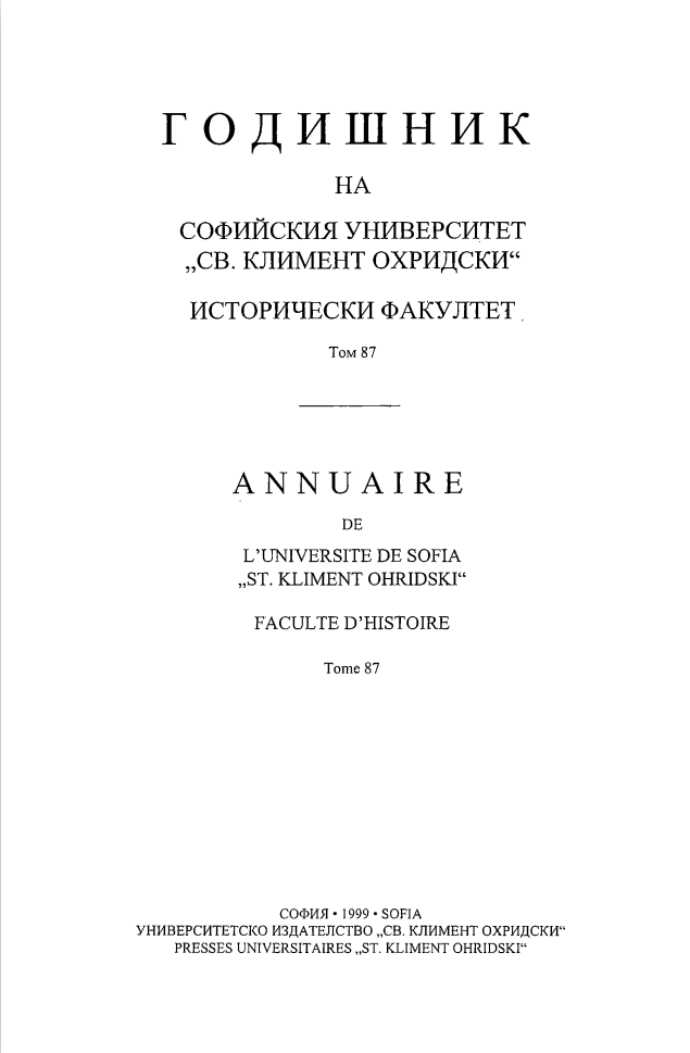 Заглавна страница и съдържание. (1999). Годишник на Софийския университет "Св. Климент Охридски" - Исторически факултет, 87(1), 1-3. https://doi.org/10.60053/GSU.IF.1.87.1-3