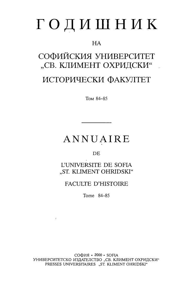 Начални страници и съдържание. (2000). Годишник на Софийския университет "Св. Климент Охридски" - Исторически факултет, 85(1), 1-3. https://doi.org/10.60053/GSU.IF.1.85.1-3