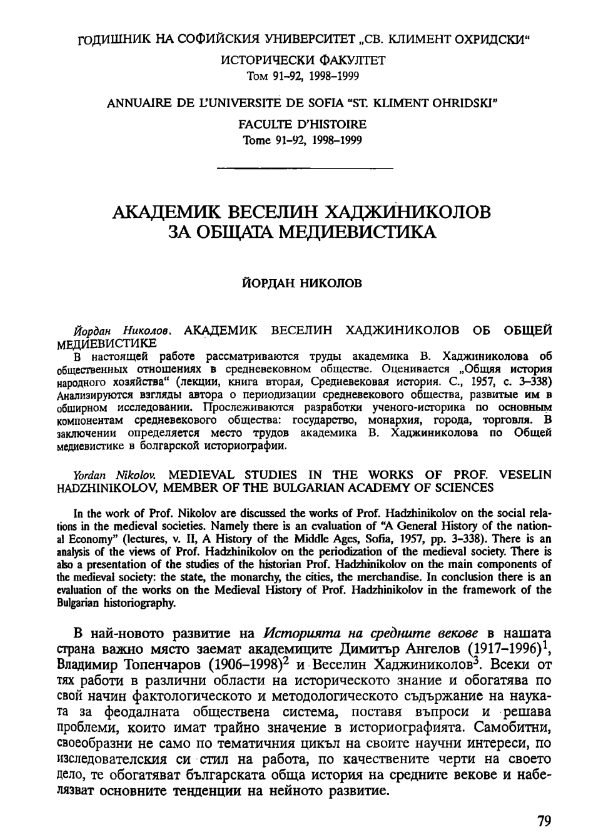 В секция Българска средновековна история се публикуват оригинални материали посветени на историята на България през Средните векове, в границите от IV до края на XIV в., засягащи теми социални, политически, културни и религиозни. Приемат се още преводи на оригинални документи от езиците, използвани през този период. Добре приети са академични разработки, които дискутират нерешени политически и обществени, така също философски и богословски проблеми, свързани с разнообразни подходи и методи в медиевистиката.