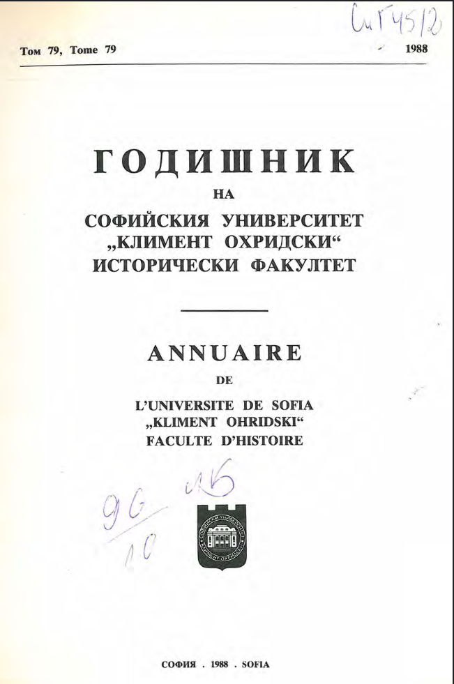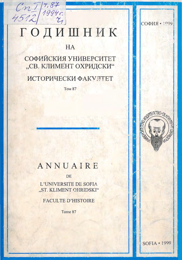 • Годишник на Софийския университет „Св. Климент Охридски“ – Исторически Факултет
