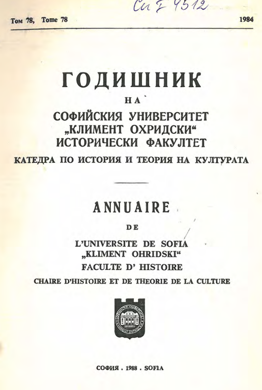 • Годишник на Софийския университет "Климент Охридски" - Исторически факултет. Катедра по история и теория на културата