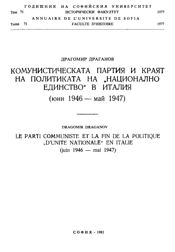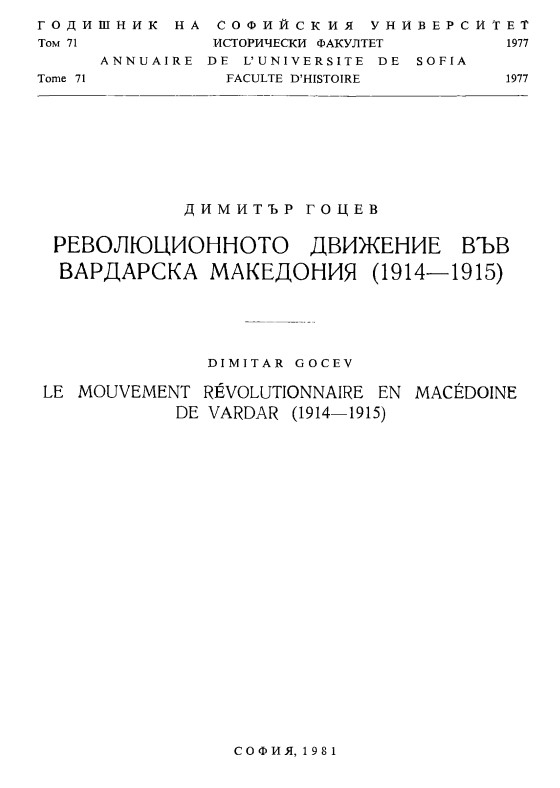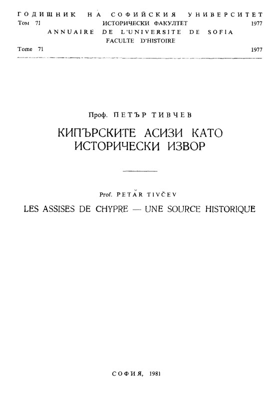Т. 71 (1977): Годишник на Софийския университет "Климент Охридски" - Исторически Факултет