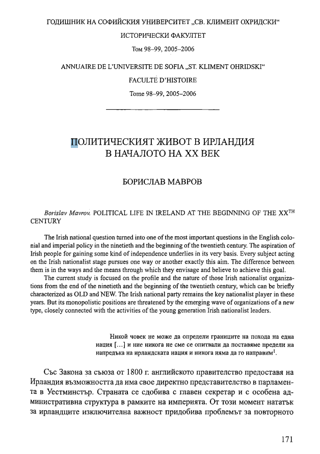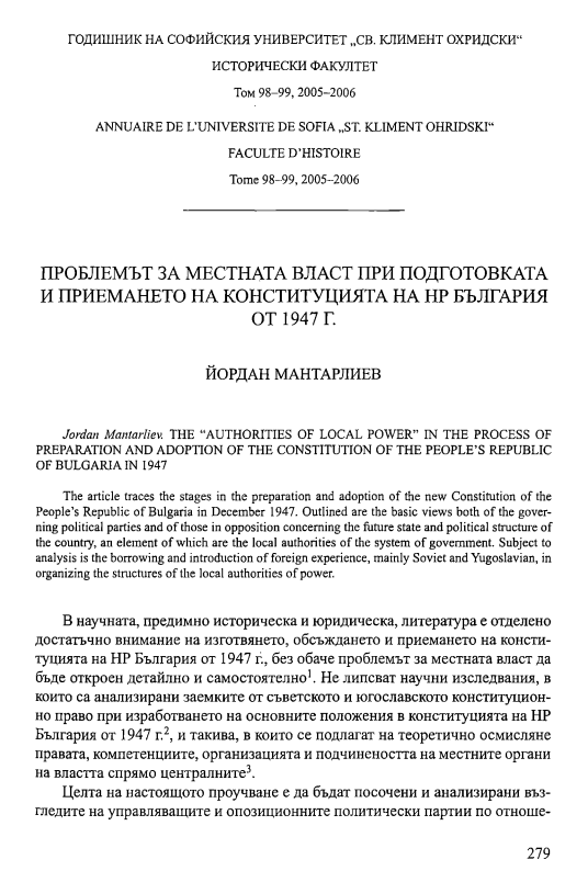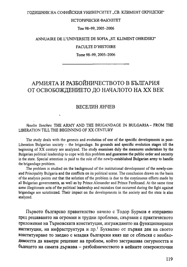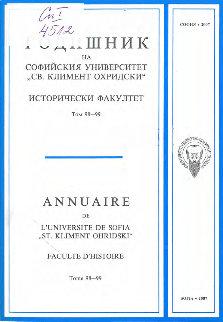 Т. 99 Бр. 1 (2007): Годишник на Софийския университет "Св. Климент Охридски" - Исторически факултет