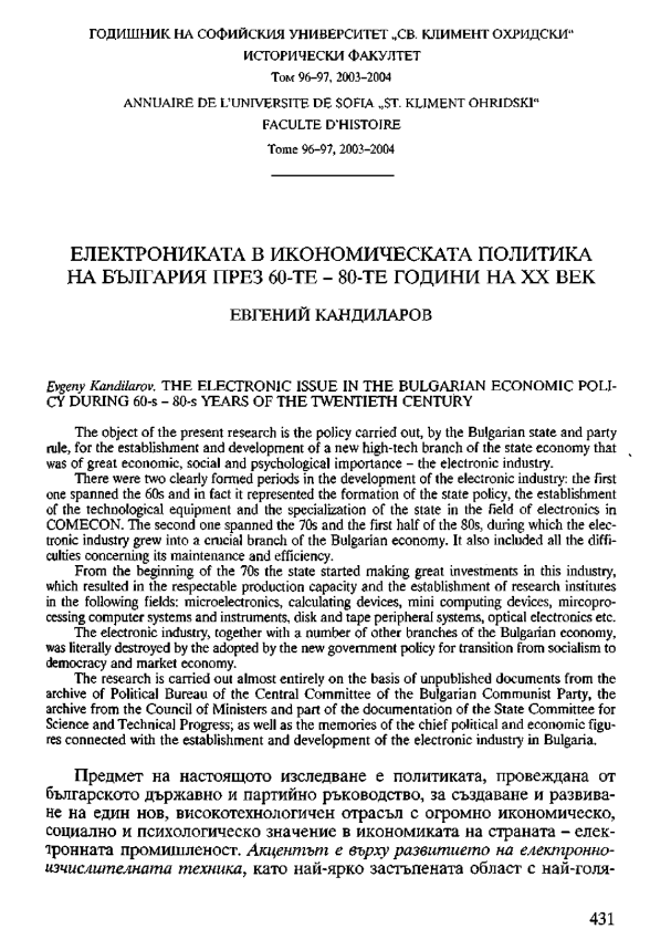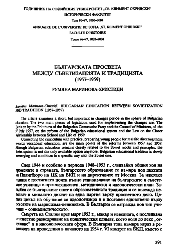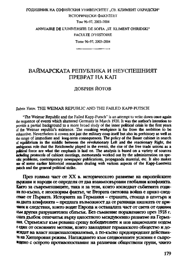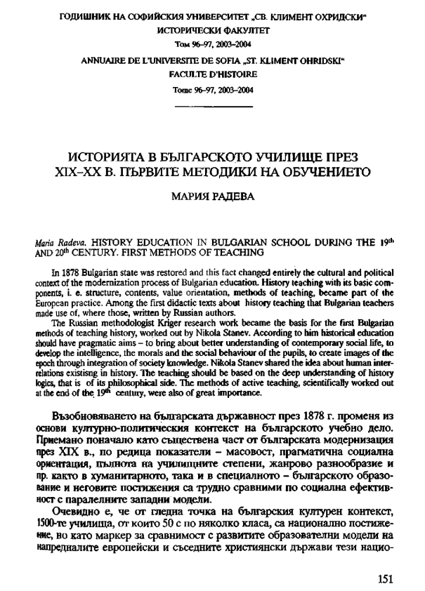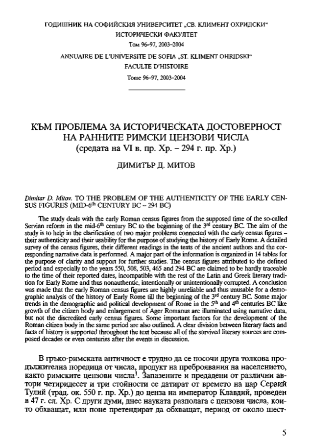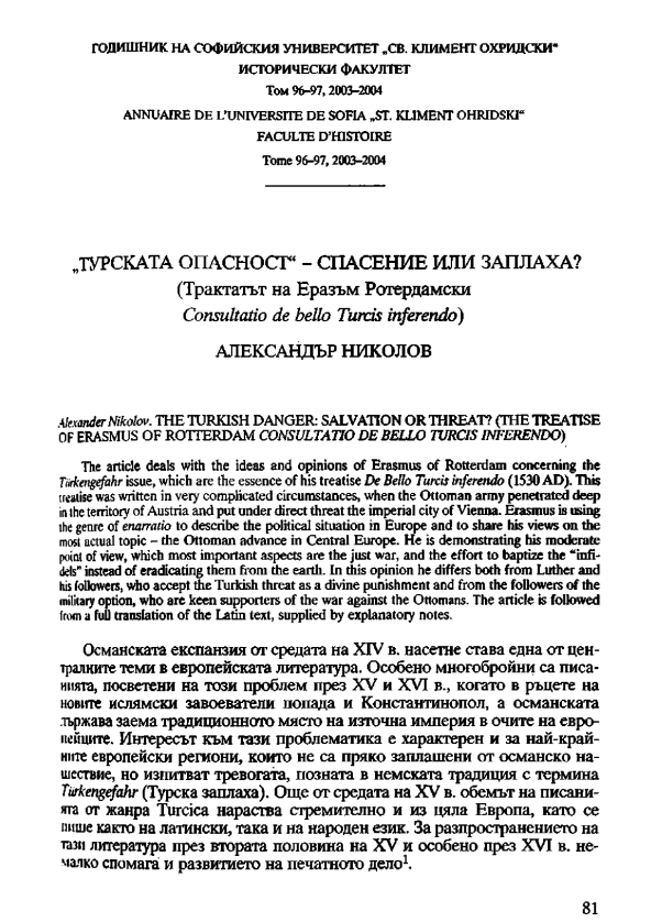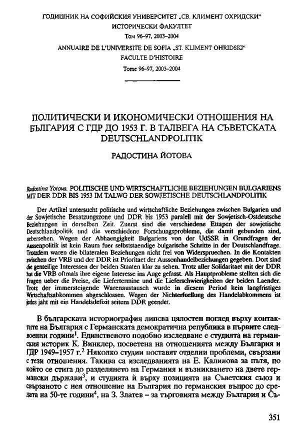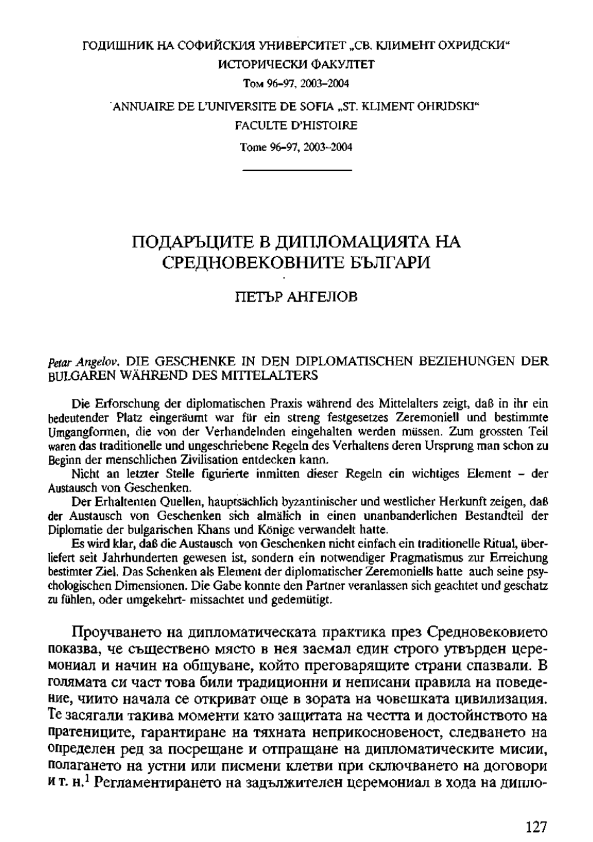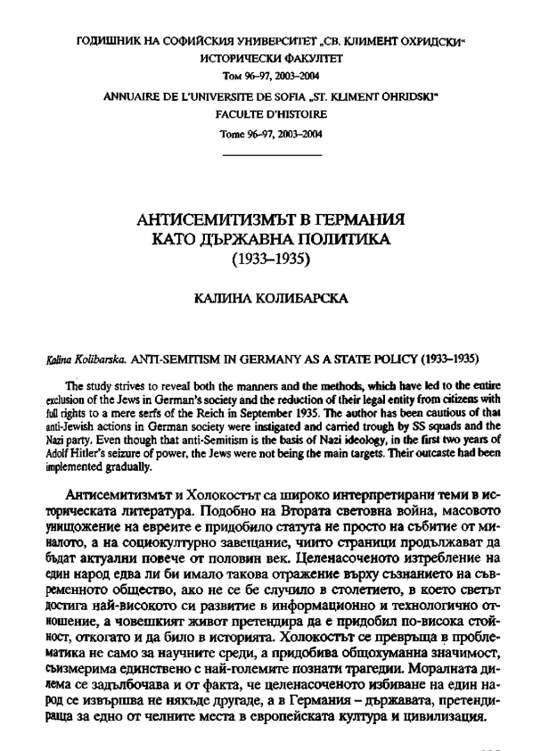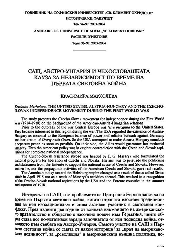 Т. 97 Бр. 1 (2006): Годишник на Софийския университет "Св. Климент Охридски" - Исторически факултет