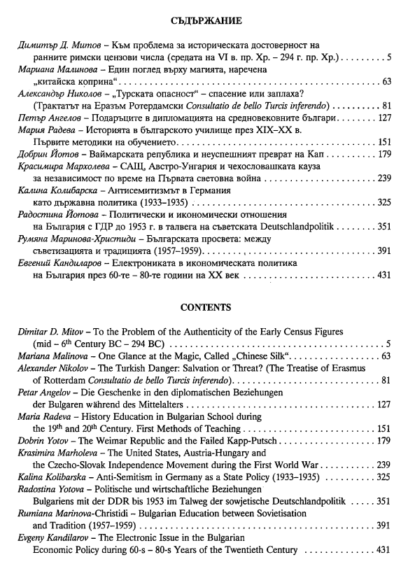 Том 96–97 на Годишник на Софийския университет „Св. Климент Охридски“. Исторически факултет включва научни изследвания на преподаватели, докторанти и изследователи, представящи широк хронологически и тематичен обхват – от Античността до края на ХХ век. Публикациите разглеждат проблеми от политическата, социалната, културната и стопанската история в национален и международен контекст. Сред застъпените теми са: ранноримската демографска статистика, културните символи на китайската цивилизация, ренесансовата политическа мисъл за „турската опасност“, дипломатическите практики на средновековните българи, развитието на историческото образование в България, кризите на Ваймарската република, международните отношения през Първата световна война, антисемитската политика в нацистка Германия, българо-германските отношения в контекста на съветската външна политика, просветната система в периода на съветизацията и ролята на електрониката в икономическата политика на България през втората половина на ХХ век.