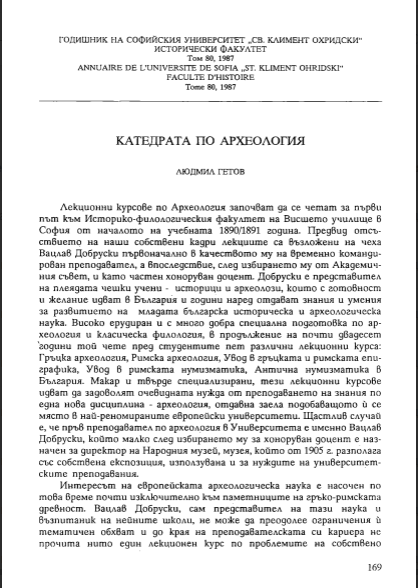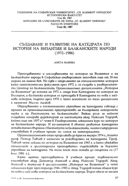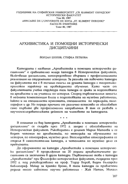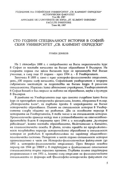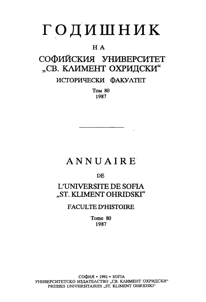 Т. 80 Бр. 1 (1987): Годишник на Софийския университет "Св. Климент Охридски" – Исторически факултет